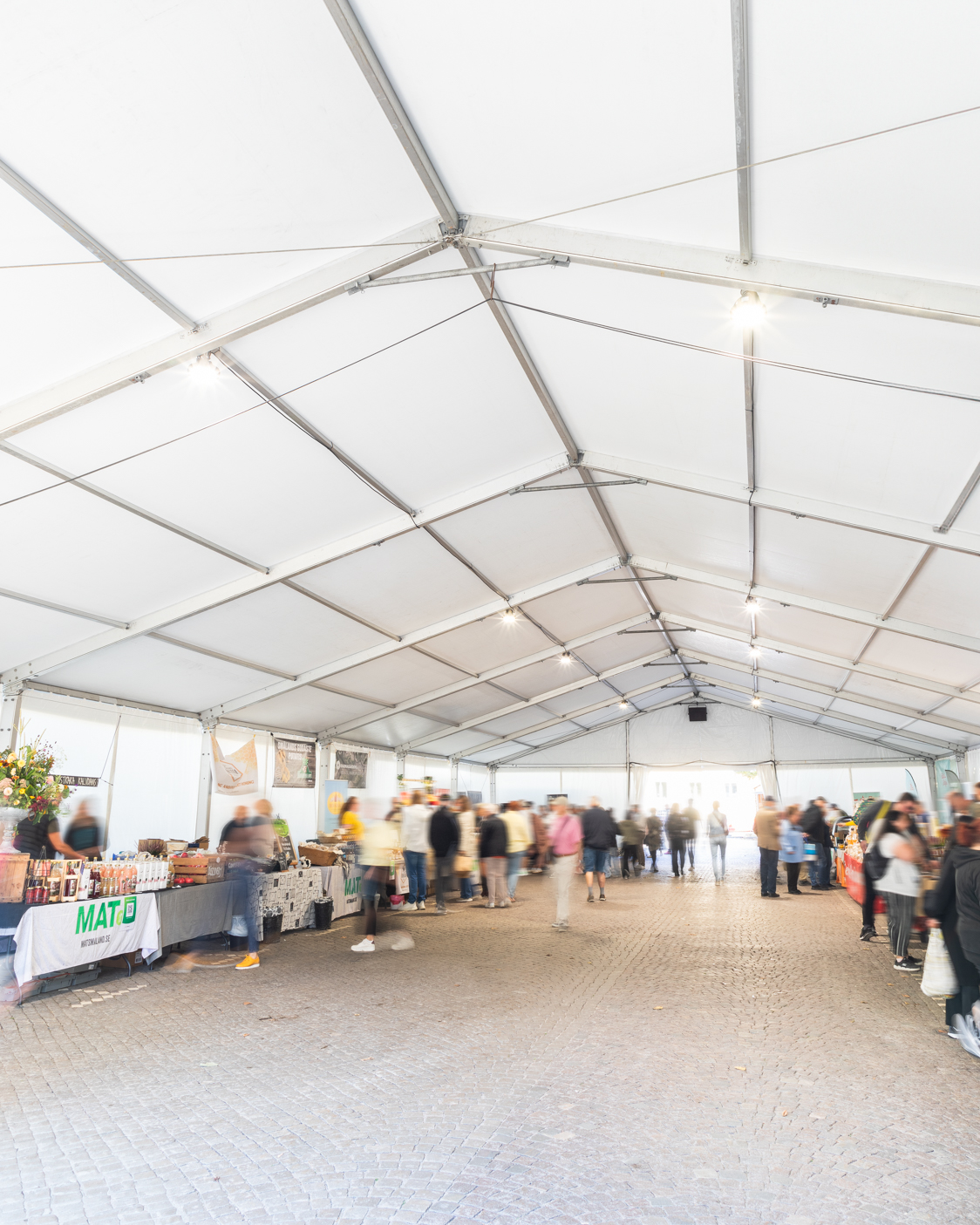 MAT i Småland har under många år vuxit till ett av Sveriges största matevenemang. Varje höst samlas över 75 000 besökare uppemot 100 lokala och regionala utställare i Växjö för att uppleva lokalproducerad mat, dryck, seminarier och aktiviteter och i en unik miljö. Och vi har haft i uppdrag att bistå med marknadstält men även andra tältlösningar under flera år och att få vara en del av MAT i Småland är något vi är speciellt stolta över.